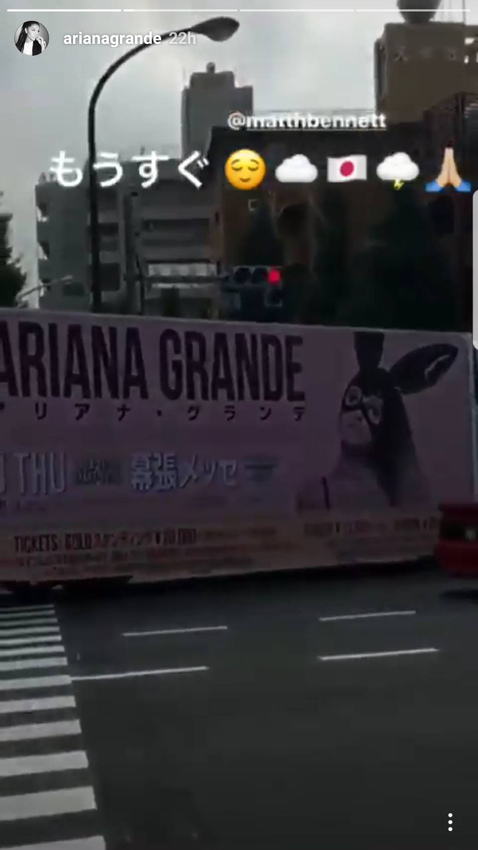 既に来日しているマットが、アリアナの来日公演を宣伝するトラックを見つけ、自身のインスタグラで先に公開。