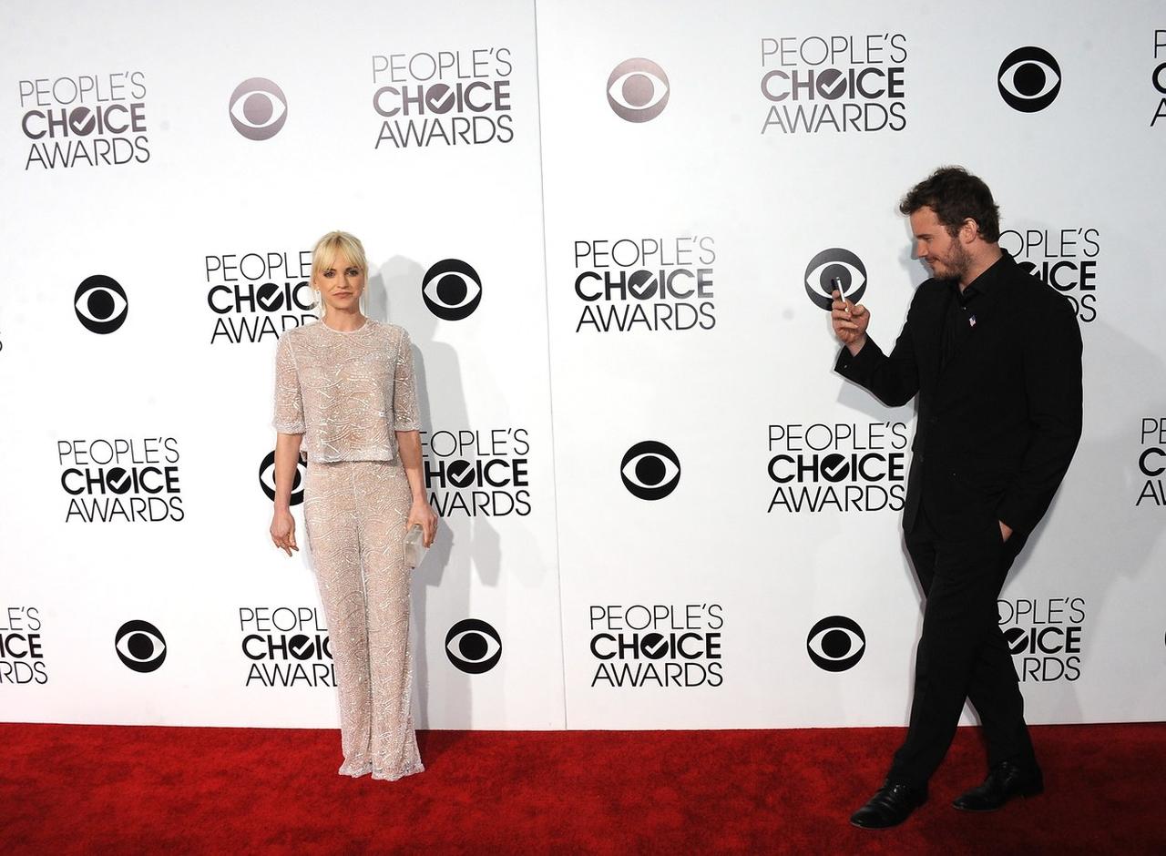 アワードのレッドカーペットを歩く妻アンナをクリスが撮影。