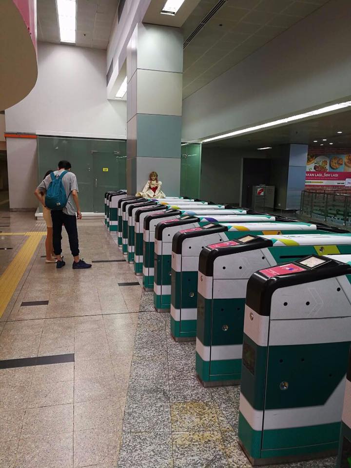 8月に入って間もないある日、マレーシアのクアラルンプールにある公共鉄道の駅の改札口に、突如、実在する呪われた人形がモデルとなったホラー映画『アナベル』の呪われた人形アナベルがやってきた。