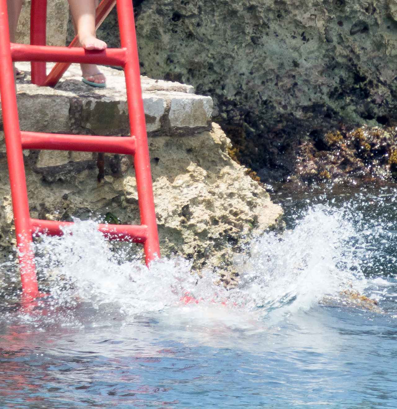ジャマイカで休暇を取っているシンガーのリタ・オラ。アクティヴなリタは、海へダイブ。その一部始終を捉えました。