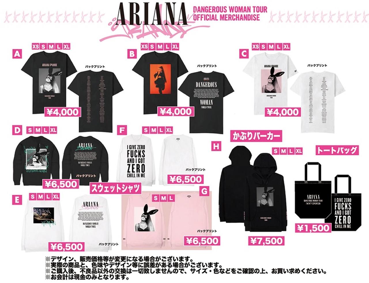 アリアナ・グランデのデンジャラス・ウーマン・ツアー来日公演で販売されるツアーグッズの情報が、先行販売情報と共に解禁された。