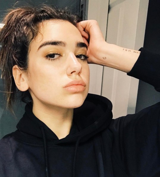 文字系タトゥーを多く入れているデュア・リパ。人気タトゥーアーティストのSean From Texasがデザインしている