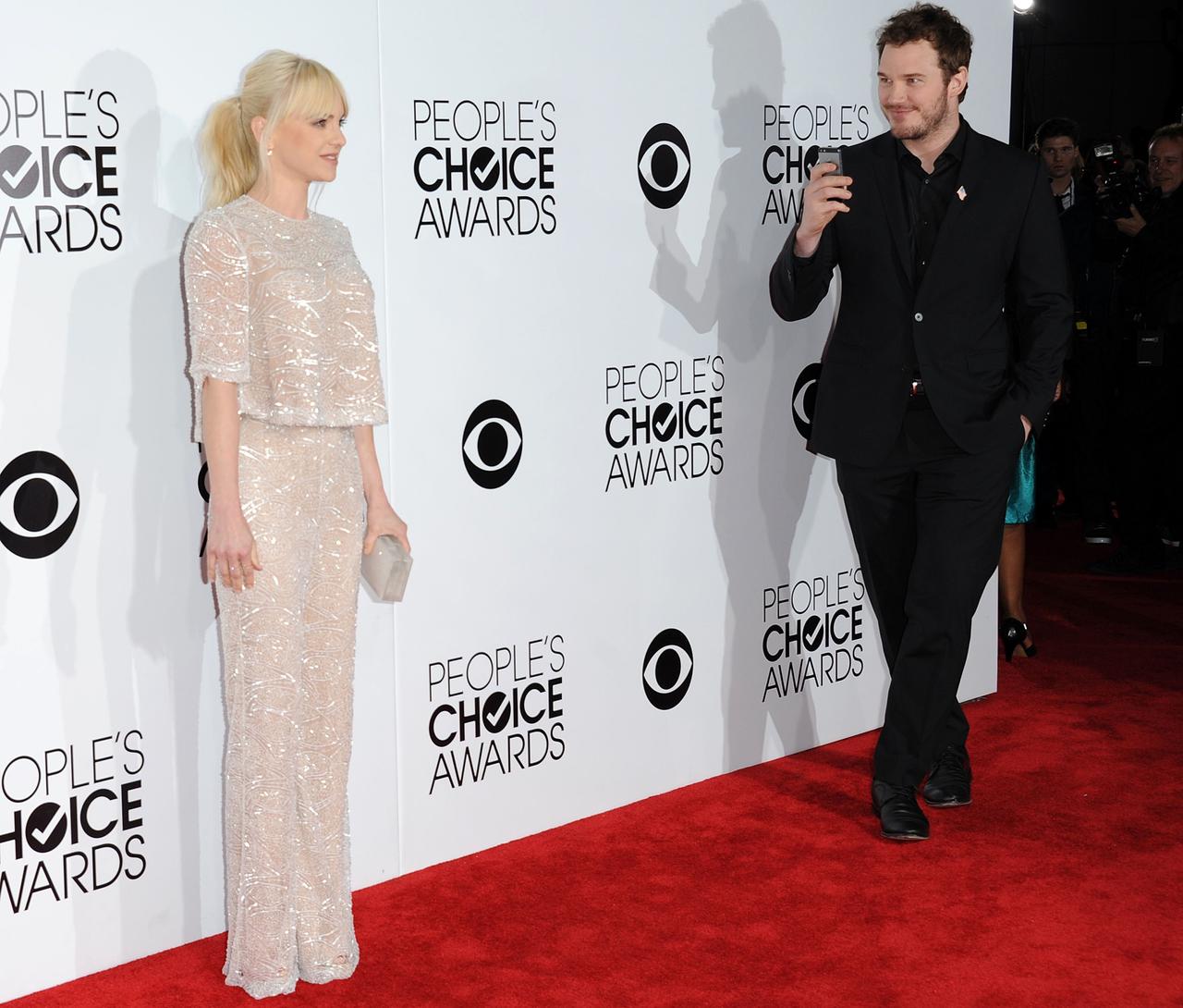 2014年に授賞式のレッドカーペットで嬉しそうに妻の写真を撮るクリス