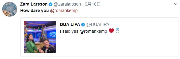 司会者が英歌手デュア・リパにも結婚を申し込んだことを知りツイート