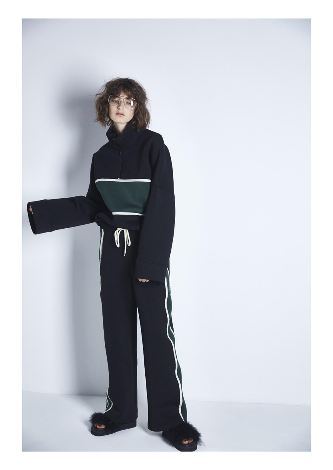 スポーツを感じさせるラインモチーフのジャケット、トップス、ボトムを始め、スタジオの鏡に向き合った際に正しい文字が見えるよう、あえて鏡文字でプリントされたTシャツなど、ジムの行き帰りはもちろん、トレーニング中(自分と向き合っている時間)のモチベーションを高めてくれるようなアイテムを展開。