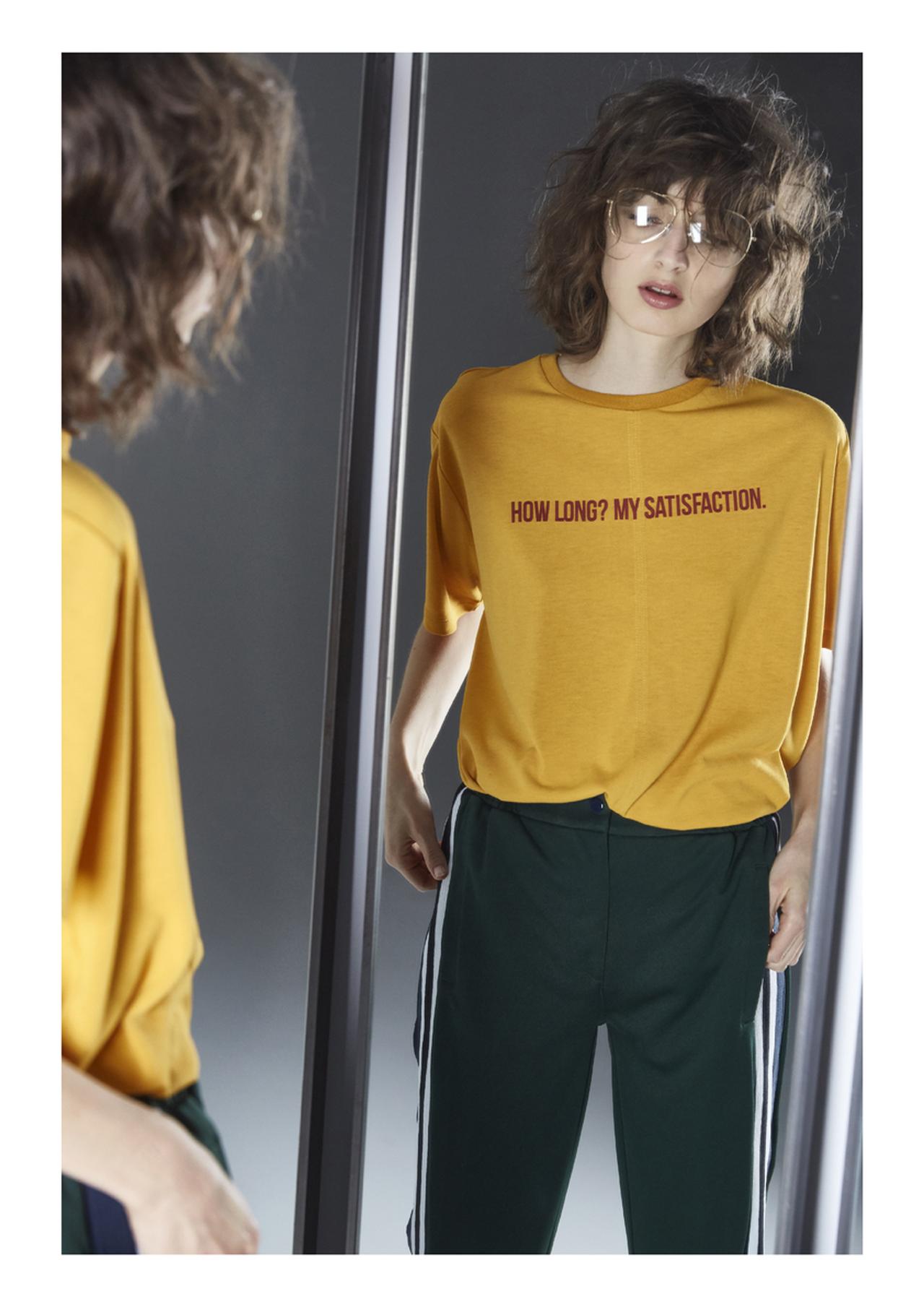 「鏡に映る自分のための服」をコンセプトに展開するファーストコレクションでは、メインカラーにレッド、グリーン、イエロー、パープル、ブラックといった鮮やかなカラーを採用。