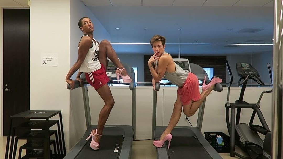 何の変哲もないランニングマシーンでトレーニング…ではなく、華麗なダンスを披露したのは、高さ10cm以上はあろうハイヒールを履いた男性たち。