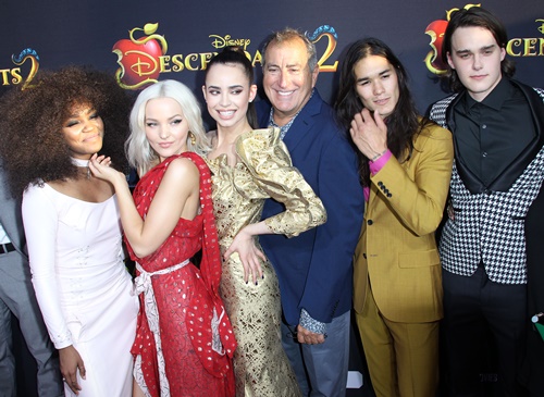 『ディセンダント2』のLAプレミアにて、チャイナ(左)と監督(中央右)が共演者と。