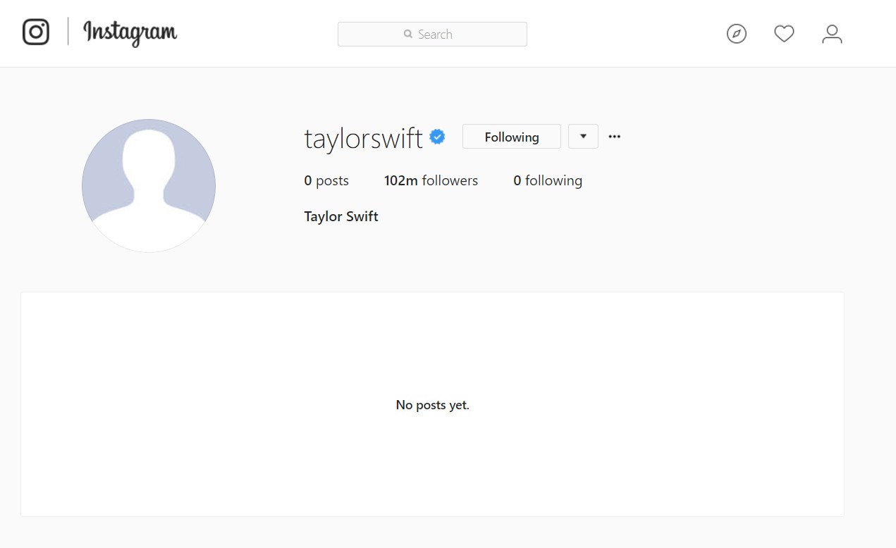 テイラーのインスタグラムは、プロフィール画像と全投稿が削除され、まったくの空白に。さらにこれまでフォローしていたアカウントもすべてアンフォローされ、フォローしている人の数はゼロに。