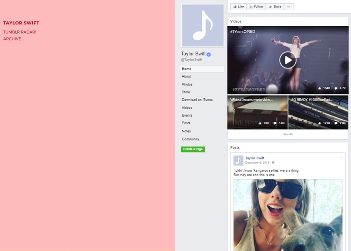 さらに、テイラーのタンブラーもコンテンツが全て削除。フェイスブックも2015年の12月の以降の投稿はすべて削除されている。