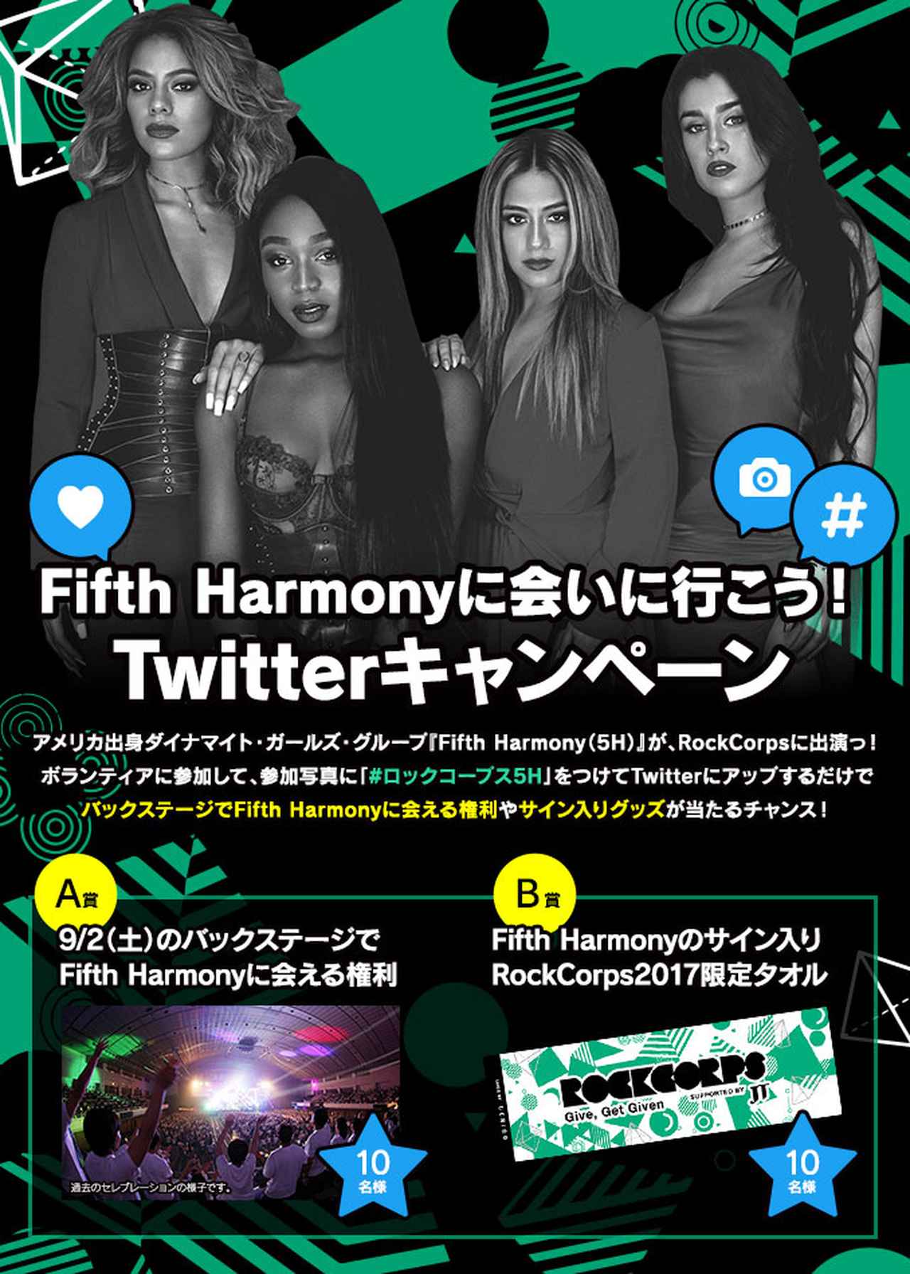 ボランティア参加時の写真に、ハッシュタグ「#ロックコープス5H」をつけてツイッターに投稿した人の中から抽選で、フィフス・ハーモニーに会えるチャンスを含む豪華賞品が当たる。