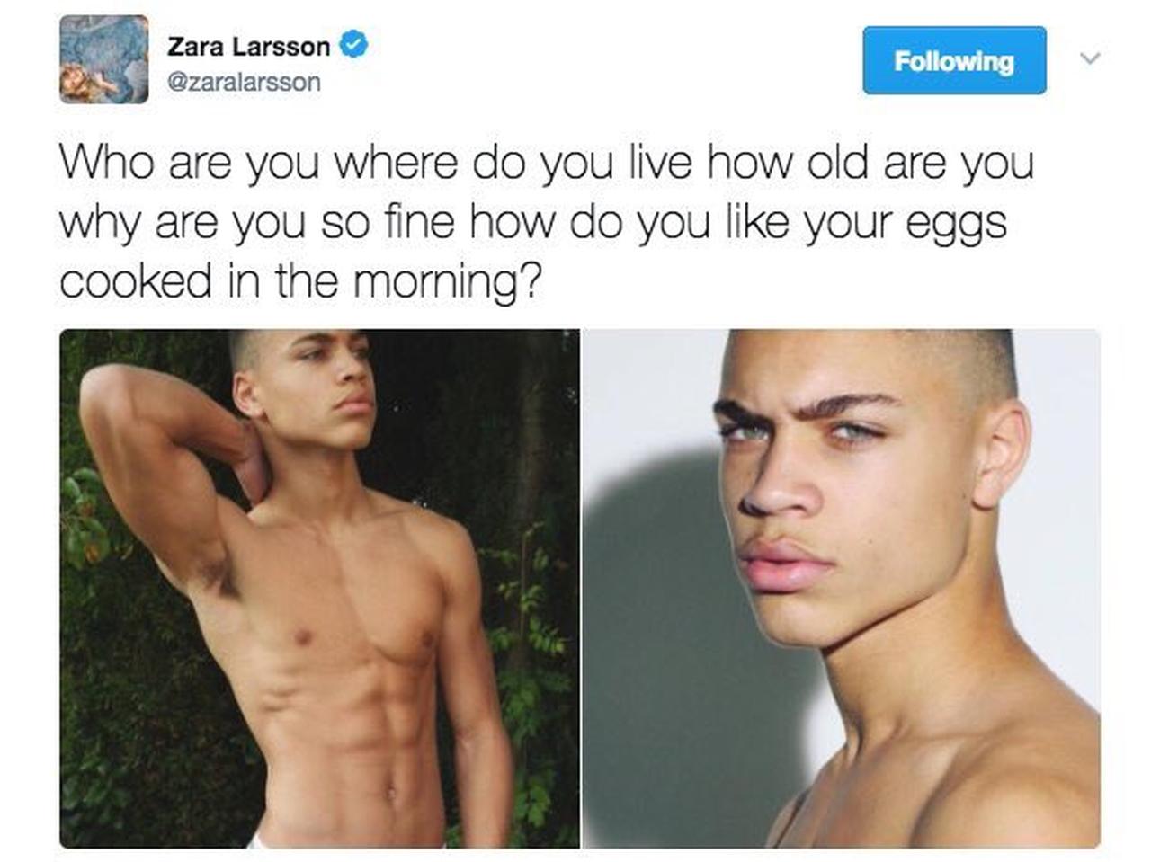 ブライアンの写真をネットで見つけたザラが、2015年に彼の写真に「あなたは誰、どこに住んでるの、歳はいくつ、なんでそんなにカッコいいの、朝食の卵はどう調理されているのがいい?」というコメントをつけてツイート。
