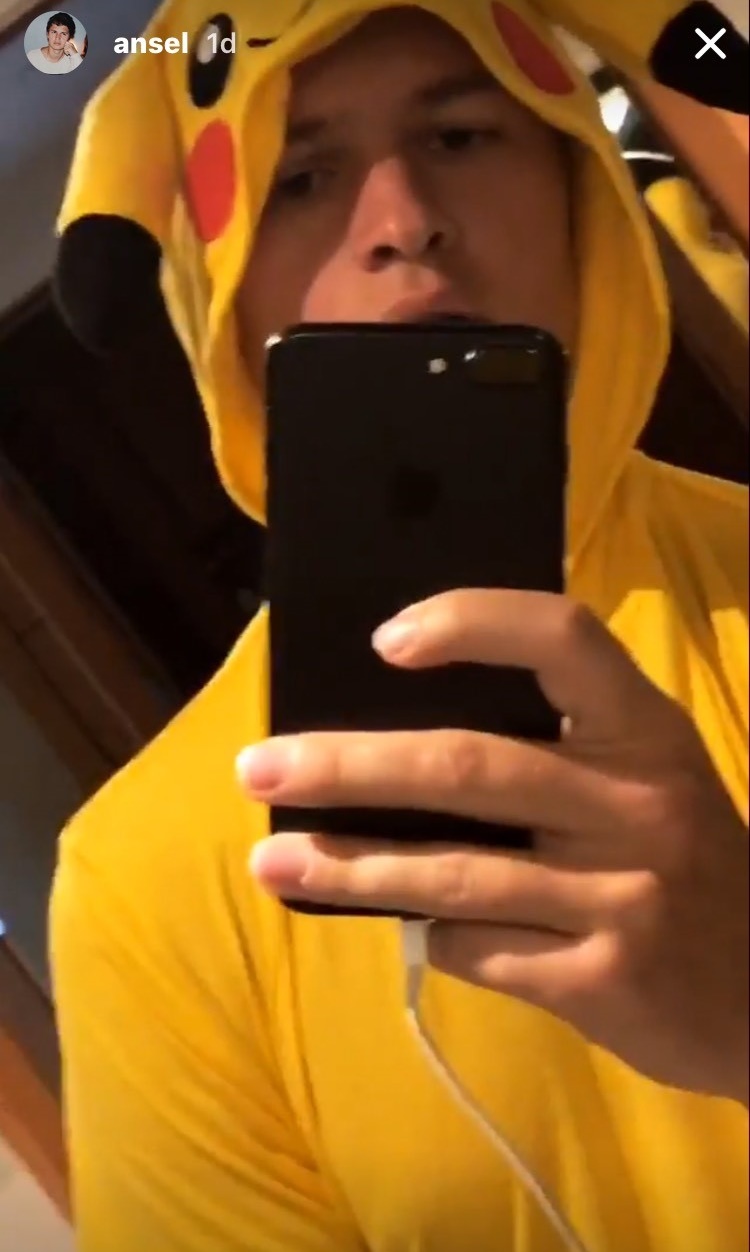 現在、来日中の人気若手俳優のアンセル・エルゴートが、ピカチュウの着ぐるみを着てガールフレンドらと秋葉原でショッピング。