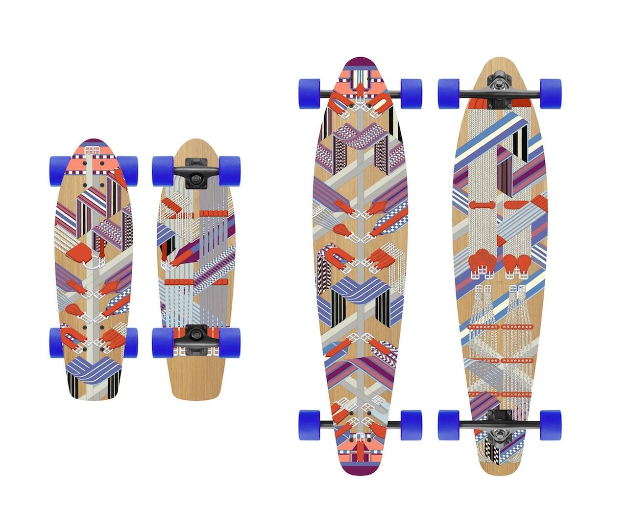 スケートボードは大小の2サイズ、3種類のデザインで展開されている。50年以上ブランドの専属アーティスティック・ディレクターを務めているアンリ・ドリニーによってデザインされ、ブナと高品質のベニヤを使用しており、これ以上ない質の高いスケートボードに仕上がっている。