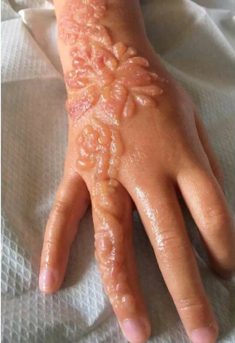 7歳の少女が旅行中にヘナタトゥーで大やけど
