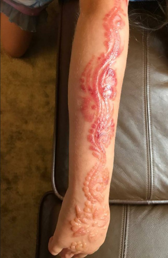 7歳の少女が旅先でブラックヘナのタトゥーに挑戦し、大やけどをする事件が起きた。