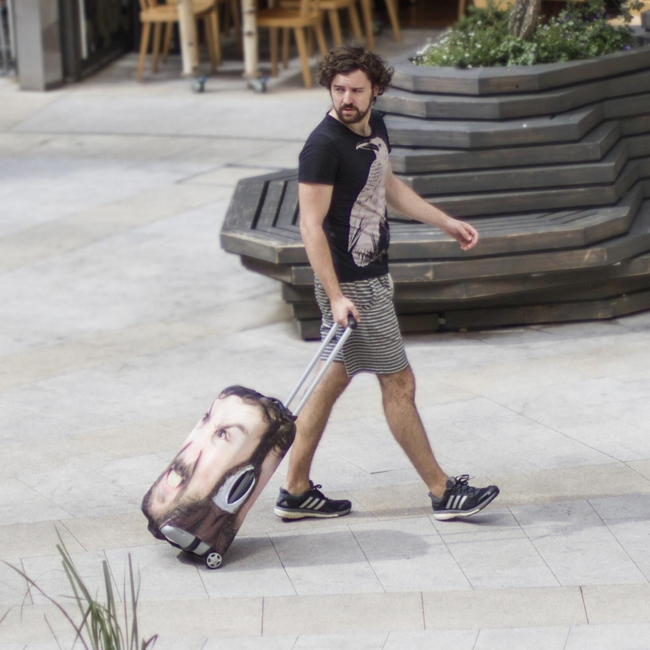 そのアイテムとは、自分の顔がプリントされたスーツケースのカバー。スーツケース全体に印刷された顔がインパクト抜群のこのカバーケースは、3種類のサイズ展開がありストレッチ生地のため、どんなサイズのスーツケースでもフィットする。