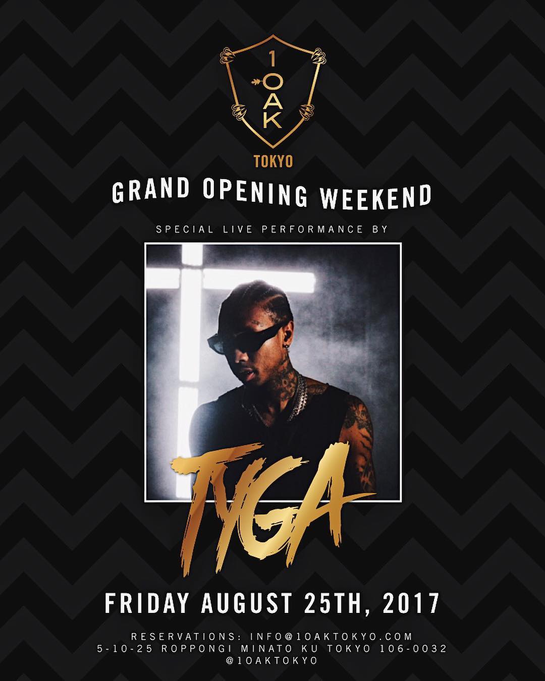 タイガは自身のインスタグラムで「東京、明日1OAK TOKYOのグランドオープニングでパフォーマンスするよ」とコメントを出している。