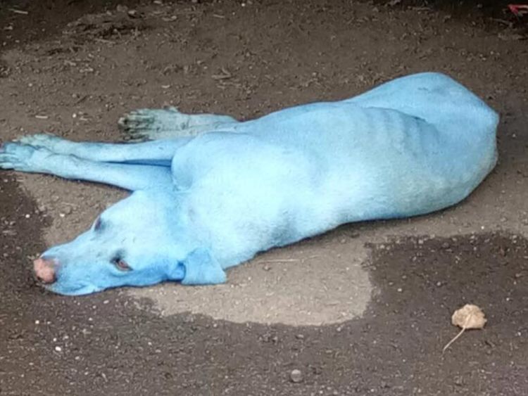 日本と違って野良犬が街中にいるのは、一般的な光景のインド。そんなインドで、野良犬の体がブルーに染まるという突然変異が発生している。