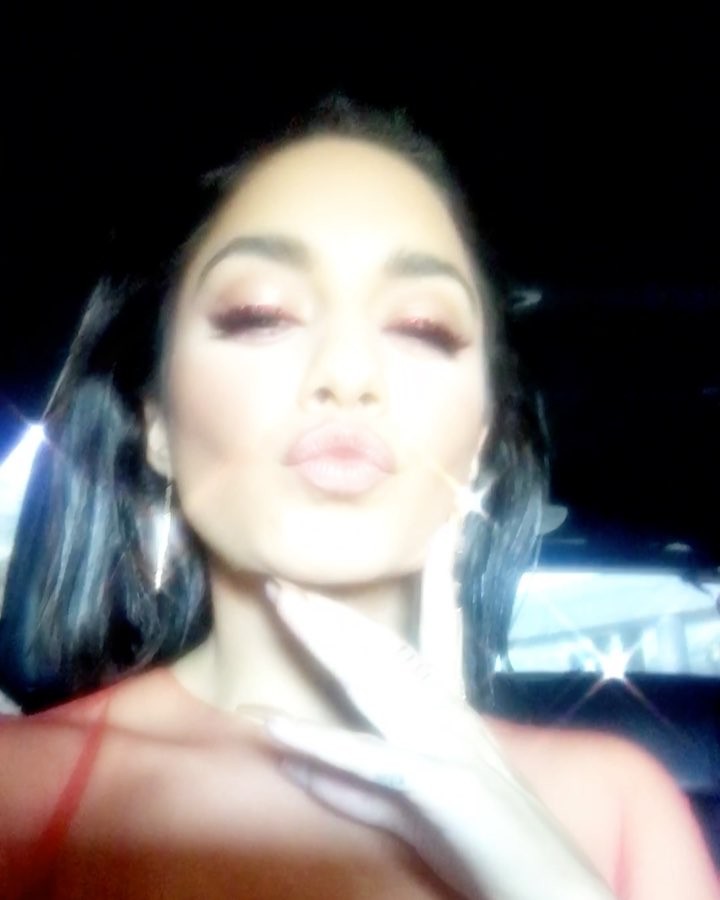 ヴァネッサは会場へ向かう車の中で、キラキラと輝くメイクを見せる様子おさめた動画をインスタグラムにアップ。このメイクがかなり気に入った様子だった。
