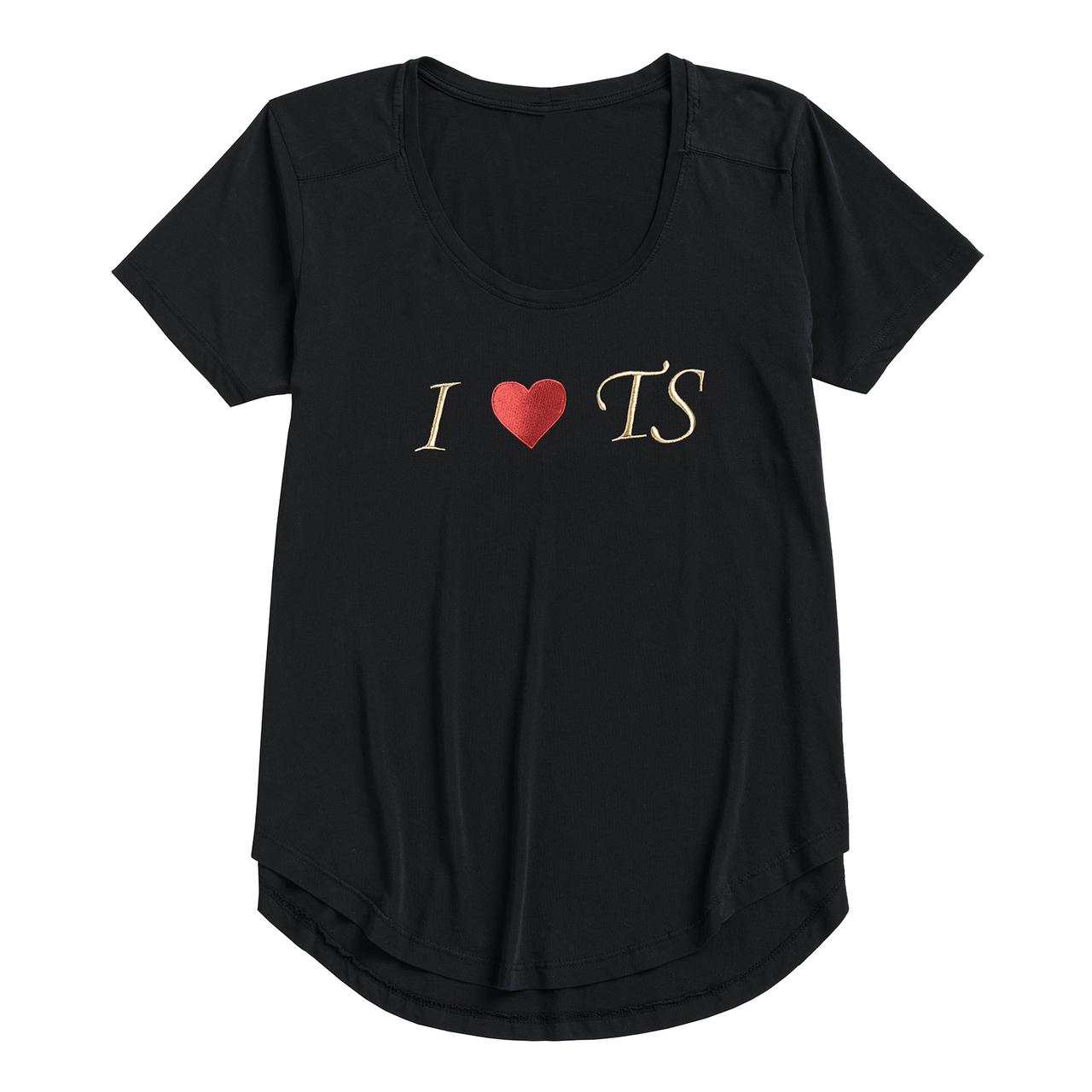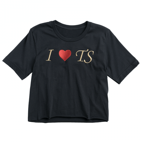 普通の丈とクロップト丈の2種類で展開されている50ドル(約5,500円)の黒Tシャツには、刺しゅうで「I ❤TS」と書かれている。じつはこのTシャツは、テイラーが去年の夏に3ヵ月だけ交際していた俳優トム・ヒドルストンが、「I❤T.S.」とプリントされたTシャツを着用して話題になったものにそっくり。