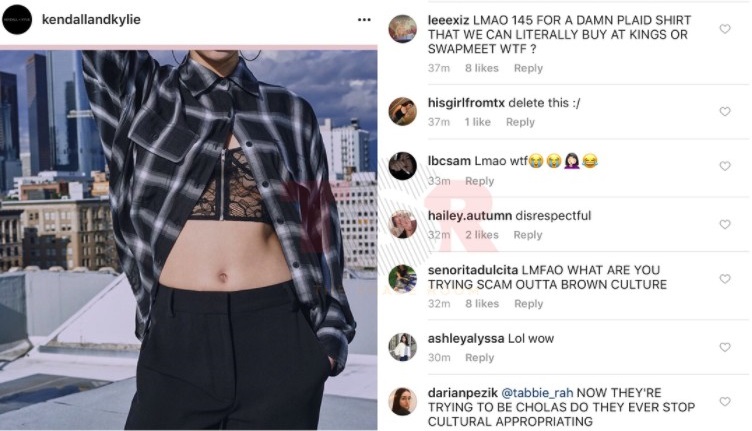 そこでKENDALL + KYLIEの公式インスタグラムにアップしたある写真が問題となっている。その写真とは、KENDALL + KYLIEの公式インスタグラムで、モデルが新着アイテムのチェック柄シャツを着ているもの。しかしその着方に多くの人が指摘を。