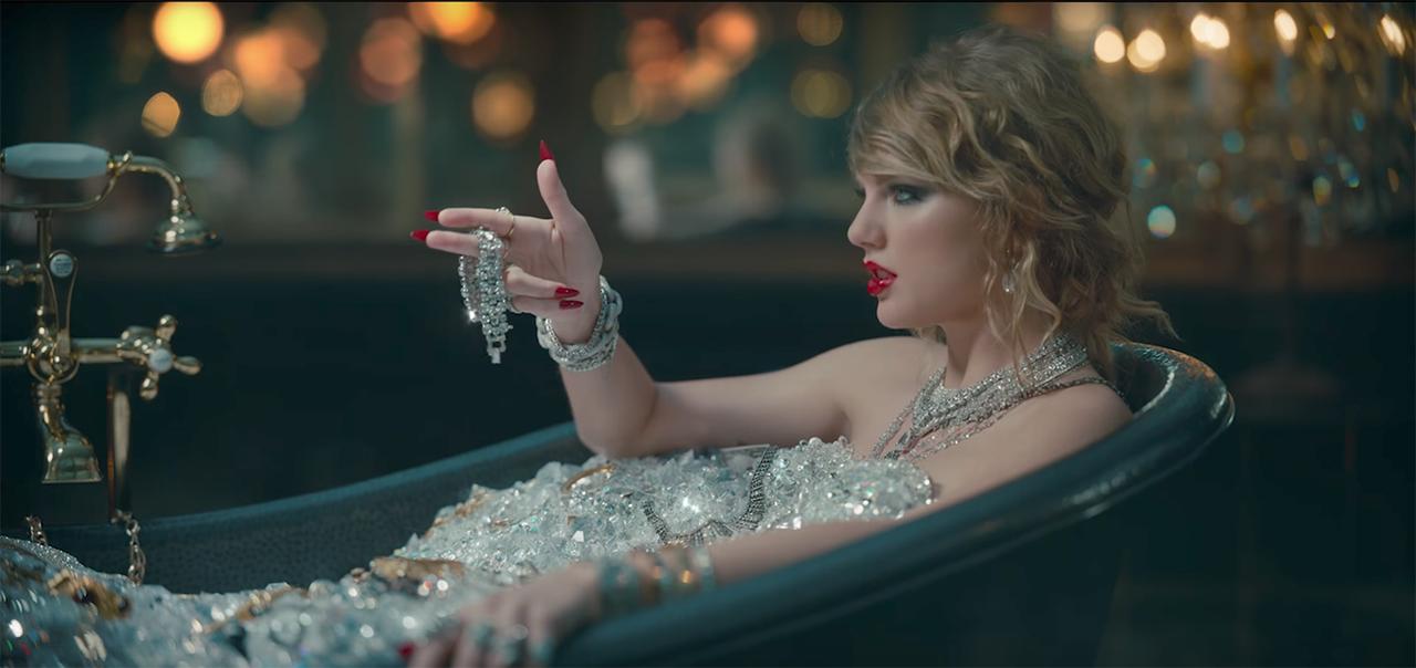 Taylor Swift appears to throw shade at Kim Kardashian, Kanye West, Katy Perry, Tom Hiddleston and Calvin Harris in her new music video. The video for Look What You Made Me Do, which premiered on August 27, sees Taylor killing off her former styles and personas and emerging as a zombie from a graveyard. There is a small dig at Calvin Harris with one of the tombstones holding the name Nils Sjöberg - the pseudonym she used to write This is What You Came For with her ex-boyfriend. Ex Tom Hiddleston does not escape unscathed, with her male backing dancers stripping off to reveal 'I heart T.S.' vests, similar to the vest Hiddleston was ridiculed for wearing at her July 4 party in 2016. Other parts of the video saw her bathing in jewels - a possible reference to the jewel heist Kim Kardashian suffered - and crashing a sports car into a T.S. branded store - with a look which appeared to have been inspired by Katy Perry. While Taylor stood slicing off the wing of a private jet with a chainsaw, her previous personas lined up in the airport hanger. A notable inclusion saw her wearing a silver gown and clutching a VMA moonman award - a nod to the time Kanye West infamously interrupted her acceptance speech at the 2009 MTV Video Music Awards. Other looks included her country music era, her You Belong With Me video look, the circus ringmaster-style costume she wore for her 2012 performance at the MTV European Music Awards and her ballerina costume from her Shake It Off video.