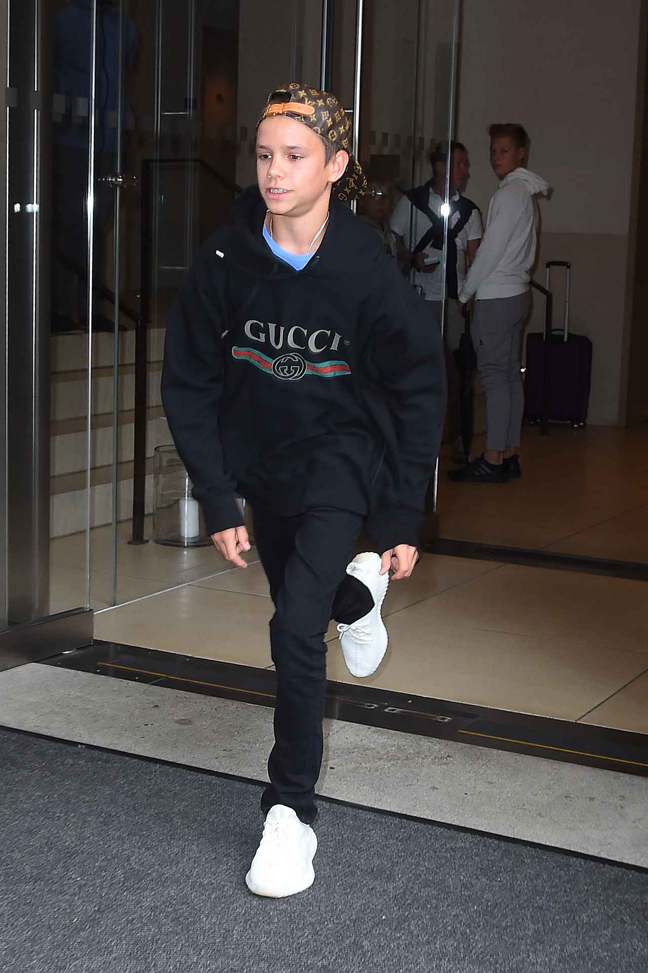 空き時間にヴィクトリアとショッピングにお出かけしたロメオは、高級ブランドのグッチのロゴスウェットと、ルイ・ヴィトンのモノグラムキャップを身に着けて登場。合わせて軽く30万円は超える組み合わせを、堂々と着こなしている。