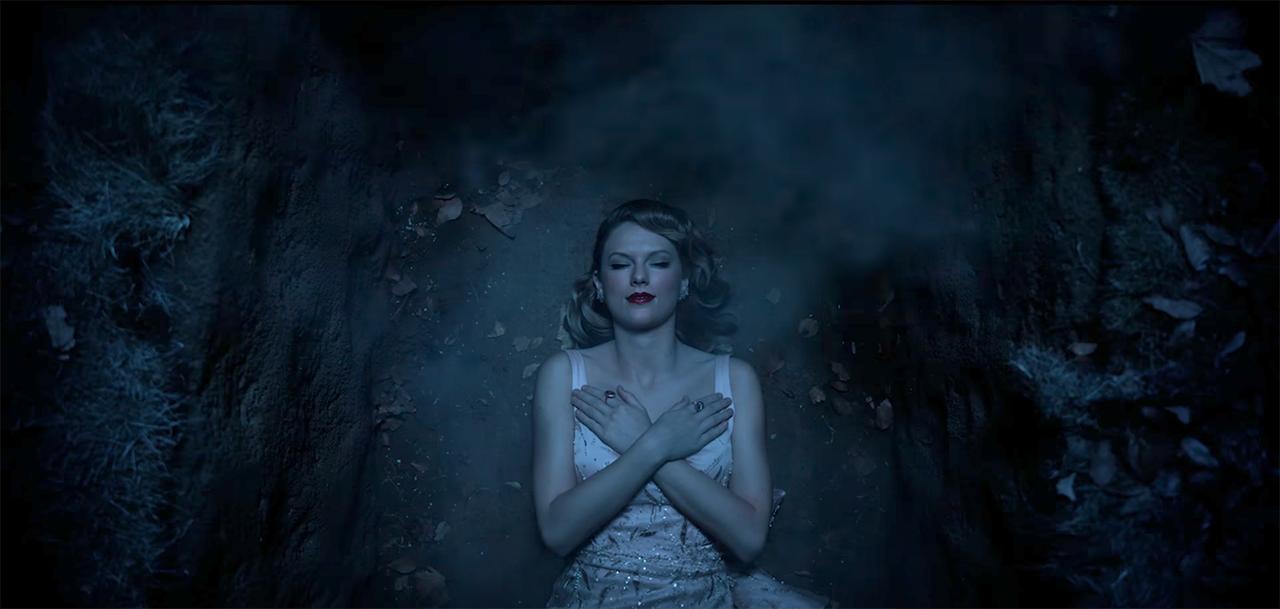 MVのはじめに登場するゾンビのテイラー。彼女が着ているドレスは、アルバム『1989』に収録されている「アウト・オブ・ザ・ウッズ」のMVで着用していたドレスと同じもの。