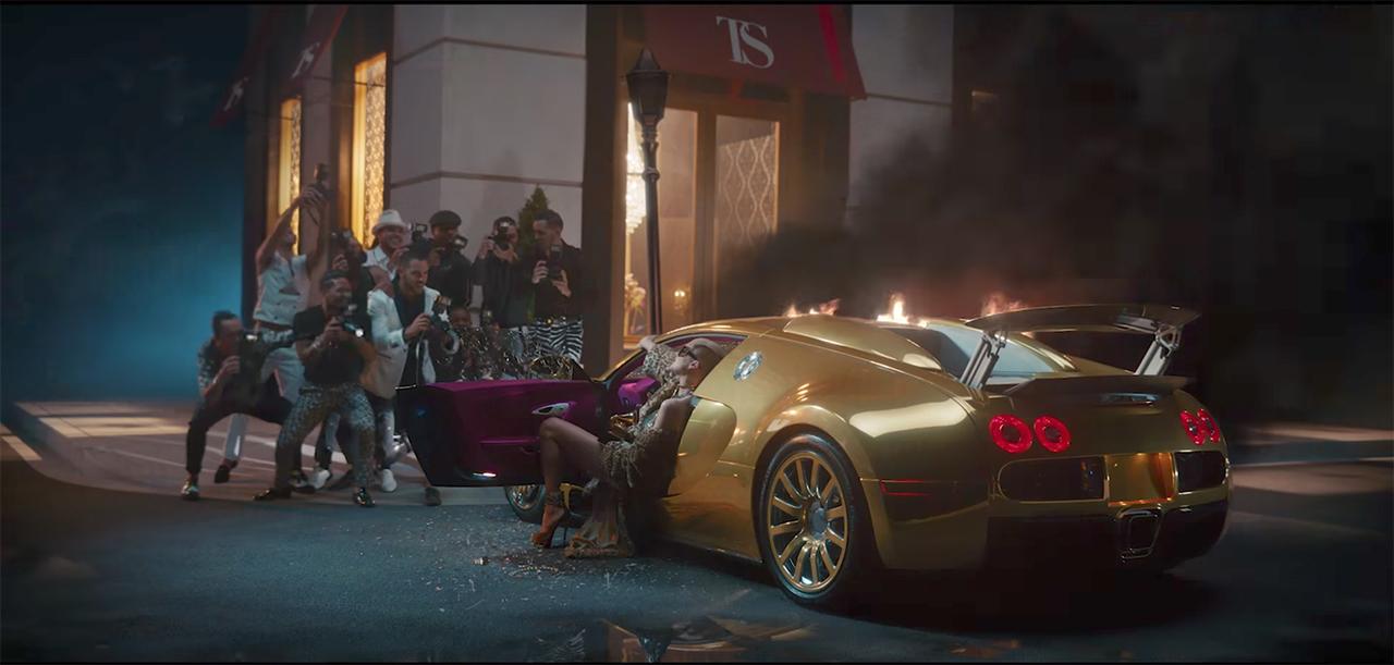 ケイティ・ペリー風のテイラーが車をクラッシュさせるシーンでは、なぜかグラミー賞のトロフィーが。