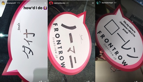 メンバーのなか唯一さっと名前を書きあげたアリーは、慎重にペンを動かす他メンバーを見て「みんなすごくない?」と驚き顔。「今、マジで真剣だから」と言ってほぼ無言で書き続けるノーマニ。そしてローレンは、「最初の四角(※ロのこと)を失敗しちゃった~」と語り、ロの線をなぞり続けて必死に修復。一方のダイナからは、「日本語は難しいよね。でもだから日本人はすごくクリエイティヴなんだよ」と嬉しいお言葉。
