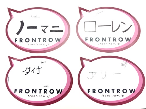 「日本語で名前を書くの初めて!私のが一番難しくない?」とはしゃぐダイナの隣で、ローレンとノーマニは早くも真剣な表情で日本語でのサインに没頭。