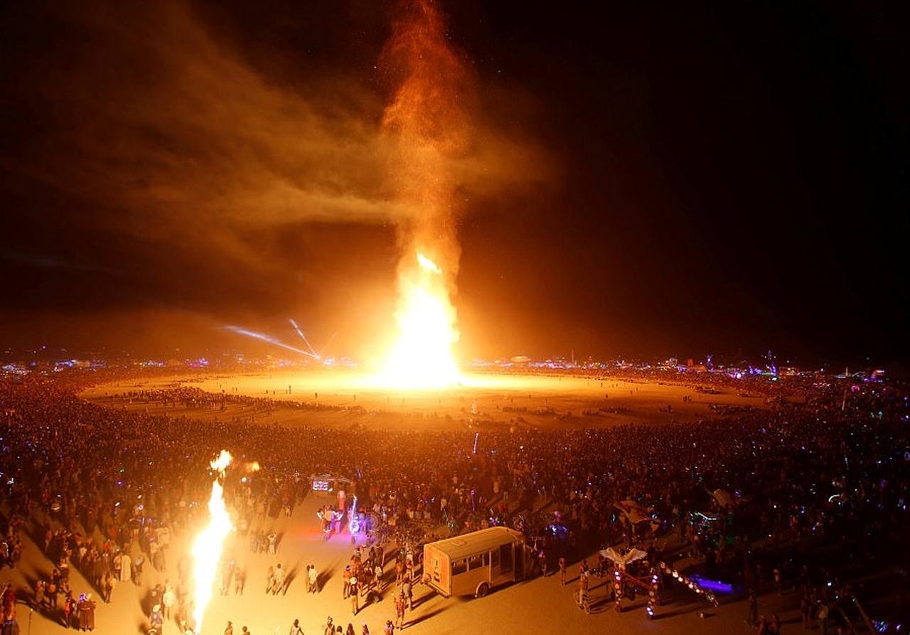 ちなみに、フェスのシンボルである巨大人形「ザ・マン」をイベントの終盤に燃やすのが毎年の恒例行事で、同フェスの名前の由来にもなっている。