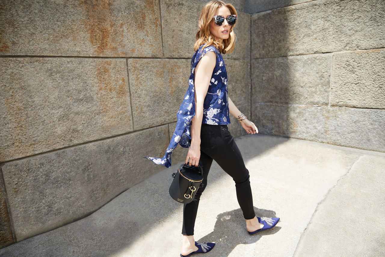 ファッショニスタのオリヴィア・パレルモは、今トレンドのバケツバッグをリピートして愛用中。