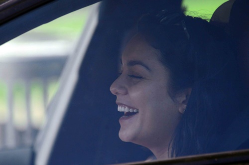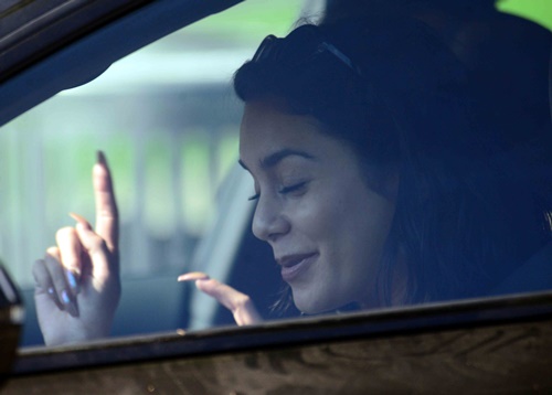 人気女優のヴァネッサ・ハジェンズが、自らハンドルを握り、ウェストハリウッドのスパへ行くところをキャッチ。