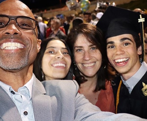 ディズニー・チャンネル・スターが多く通うLAのオーク・パーク高校を2017年に卒業。父、妹、母と卒業式にて。