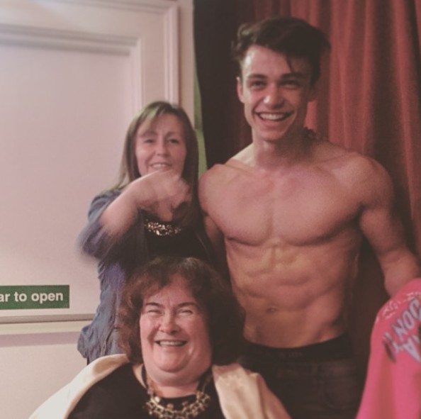 母国が誇る歌姫スーザン・ボイルと会った時の1枚。トーマスの肉体美にも注目。
