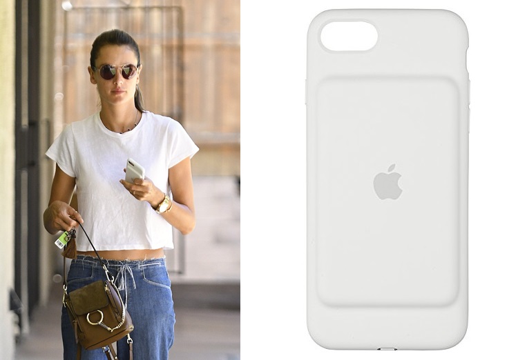 ヴィクシー・エンジェルのアレッサンドラは、Apple(アップル)のバッテリーが内臓されているスマホケースを。ほかにも多くのセレブが愛用しており、ほかにも黒と赤のカラーバリエーションがある。