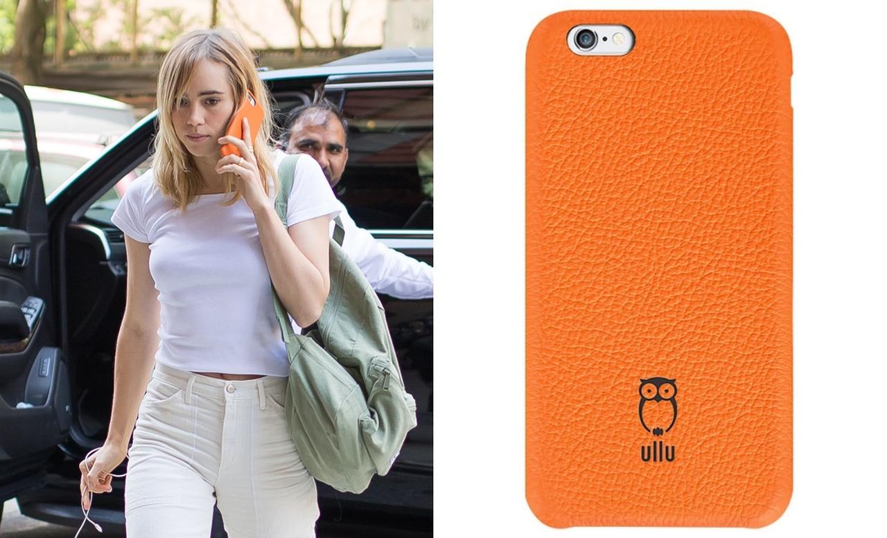 1つ1つ手作りされているレザーアイテムブランドullu(ウル)の、深みのあるオレンジカラーのケースを愛用するのはイギリス出身のモデル、スキ。