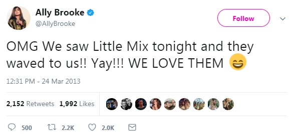 イギリスのガールズ・グループのリトル・ミックスとは、 “ライバル”として比べられることもあるフィフス・ハーモニー。けれど、じつはとても仲良し。以前、アリーがツイッターで「やばい今日リトル・ミックスを見たんだけど、彼女たちが手を振ってくれたの!! やったー!!! リトル・ミックスのこと大好き」とツイート。