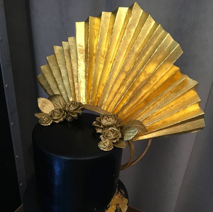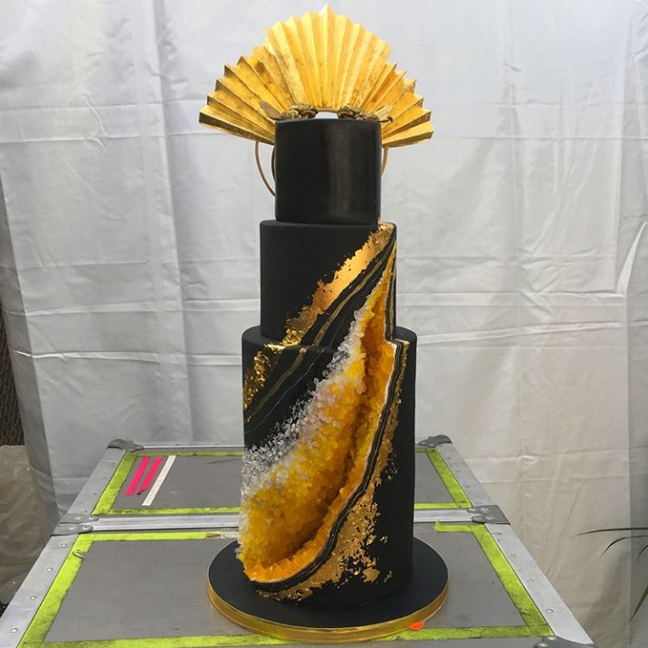 「クイーン・ビー(女王蜂)」というビヨンセの愛称に合わせ、ブラック&イエローを基調にし、ジオード(晶洞石/しょうどうせき)(※)と呼ばれる水晶をモチーフにした珍しいデザインの3段重ねのケーキには、パフォーマンスの際にビヨンセが着けていたヘッドピースを模したデコレーションをトッピングされている。