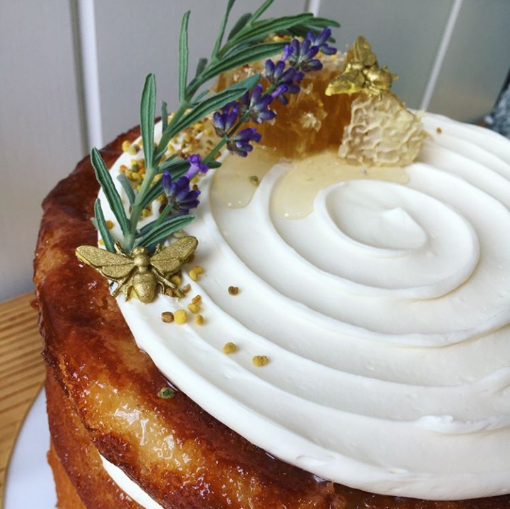 このケーキのほかにも、ハチの巣や王冠をモチーフにしたクッキーや、はちみつとラベンダーのケーキ、チョコレートケーキが用意された。