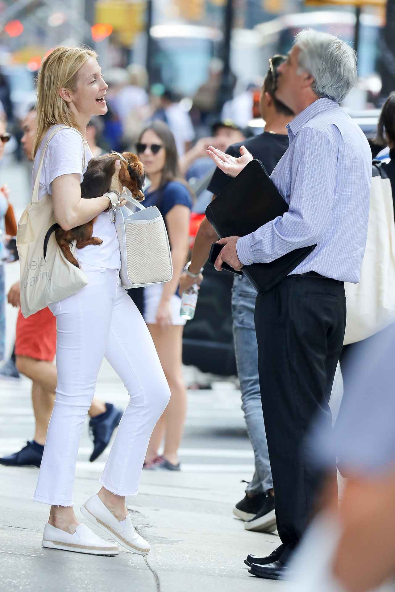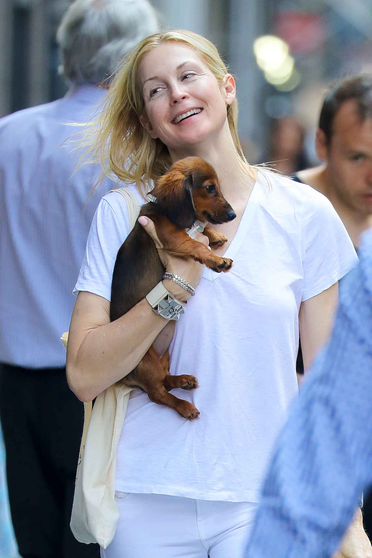 ドラマ『ゴシップガール』でセリーナの母リリー・ヴァンダーウッドセン役を演じたケリー・ラザフォードが愛犬を連れてニューヨーク市内でお出かけ。