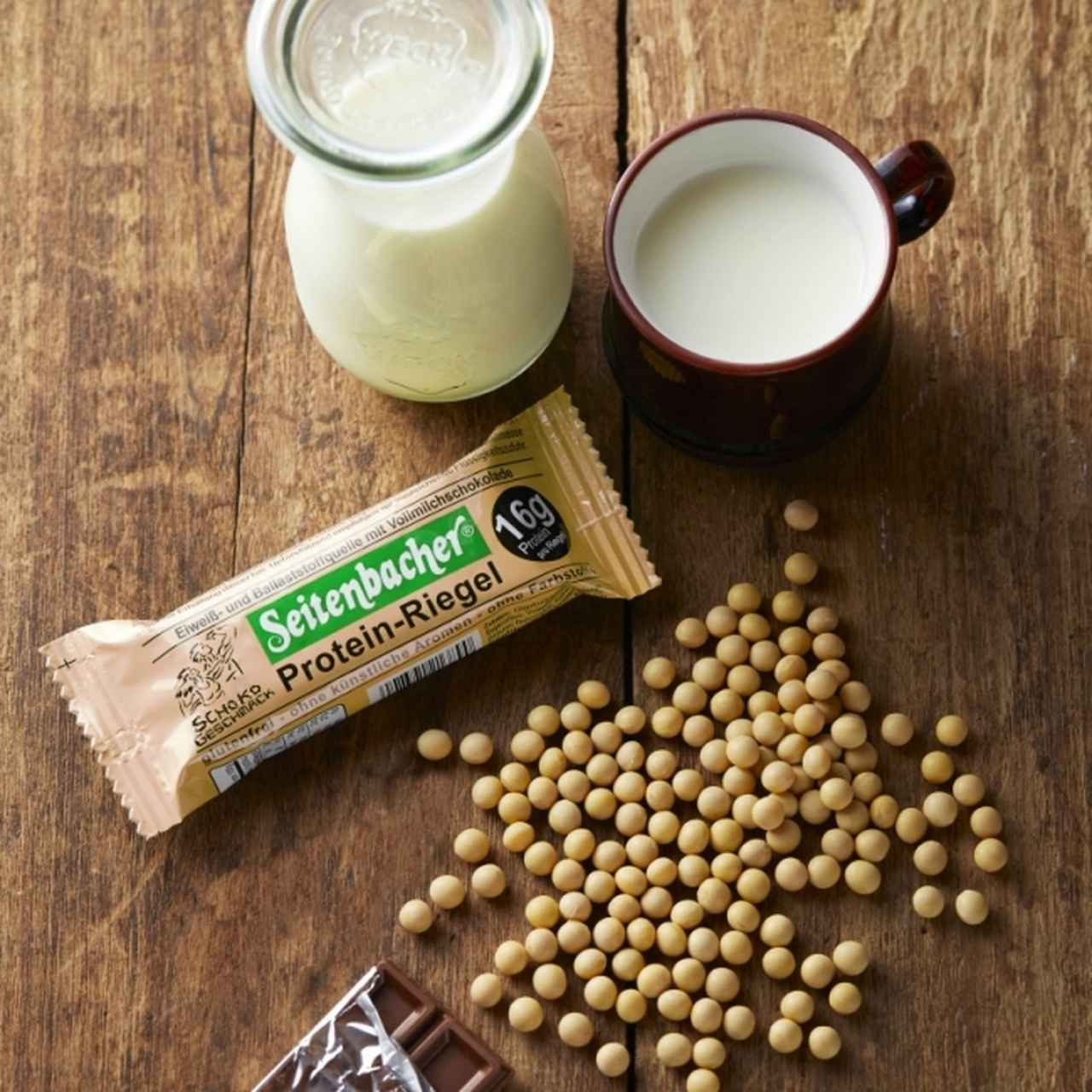・引き締まった身体、美髪・美肌にも欠かせない、大豆&乳由来のたんぱく質を豊富に含む (16g*)。