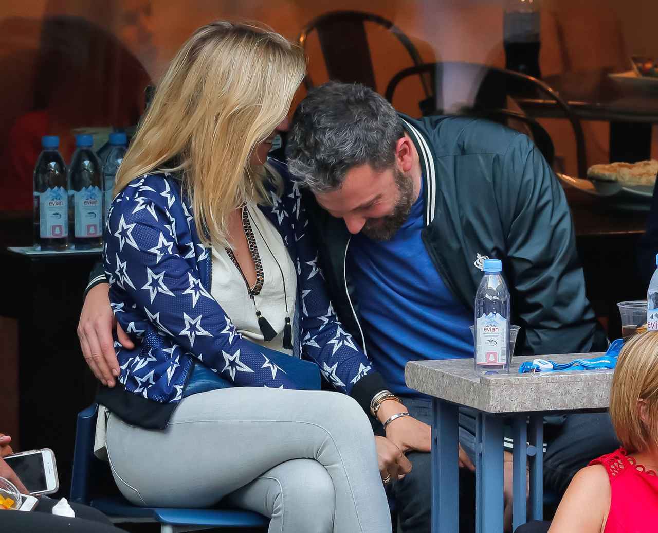 俳優のベン・アフレックが今年交際を公にした8歳年下のテレビプロデューサーと共に、テニスの全米オープンを観戦。