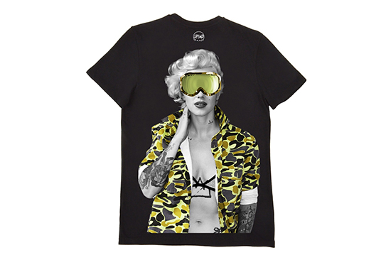 毎シーズン、 アーティスティックでインパクトのあるグラフィックが人気だけれど、今回の新作では、ゴーグルやサングラス、 カモフラージュ柄のシャツや水着をまとったグラフィックTシャツが新登場。