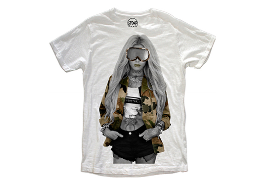 新進の若手イタリア人デザイナーのフェデリコとマルコの情熱が詰まったユニークなアートデザイン「スペンド」は、世界的に有名なアーティストやスポーツ選手、俳優などをテーマに、身体中にタトゥーをたくさん施したり、ポップなスタイリングをしたりと、現実では見ることができない斬新なイメージのプリントや、クールだけどインパクトのあるデザインが印象的。