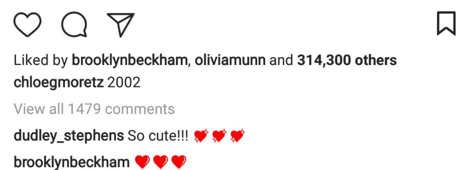 この可愛すぎる写真に反応したのは、ファンだけではなかった。すぐに反応したのは、最近復縁がウワサされているベッカム家の長男ブルックリン・ベッカム。