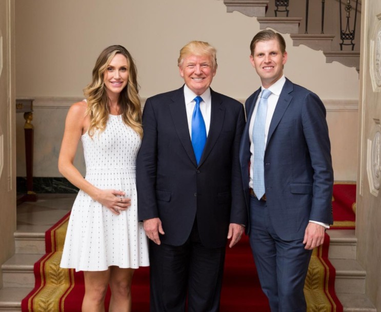 次男のエリック・トランプ氏とラーラ夫人に挟まれるトランプ大統領。 ©Lara Trump/ Instagram