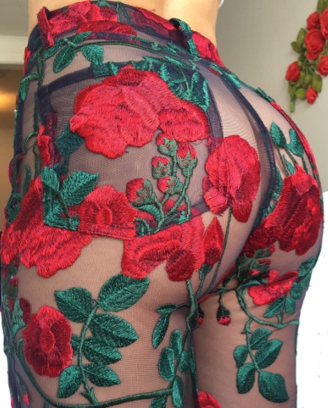 そのデニムとは、フラワーの刺繍が施されている以外は、全てシースルーになっていて下着が丸見えになっている。